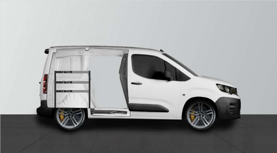 En kortere bilinnredning for den som vil bevare bredden i sin CITROËN BERLINGO, OPEL COMBO, PEUGEOT PARTNER & TOYOTA PROACE CITY L1. Innredningen er 262,5 mm dyp og gir mulighet for gode oppbevaringsmuligheter for et mindre sortiment, f.eks. pakker med skruer og mindre produkter til bygningsarbeidere, elektrikere og VVS-montører. Innredningen passer til biler både med og uten sidedører, og det er mulig å komplettere innredningen med våre smarte modulbokser. Komplettering av gavlen med vår smartboks er også et populært alternativ for å maksimere oppbevaringsplassen.