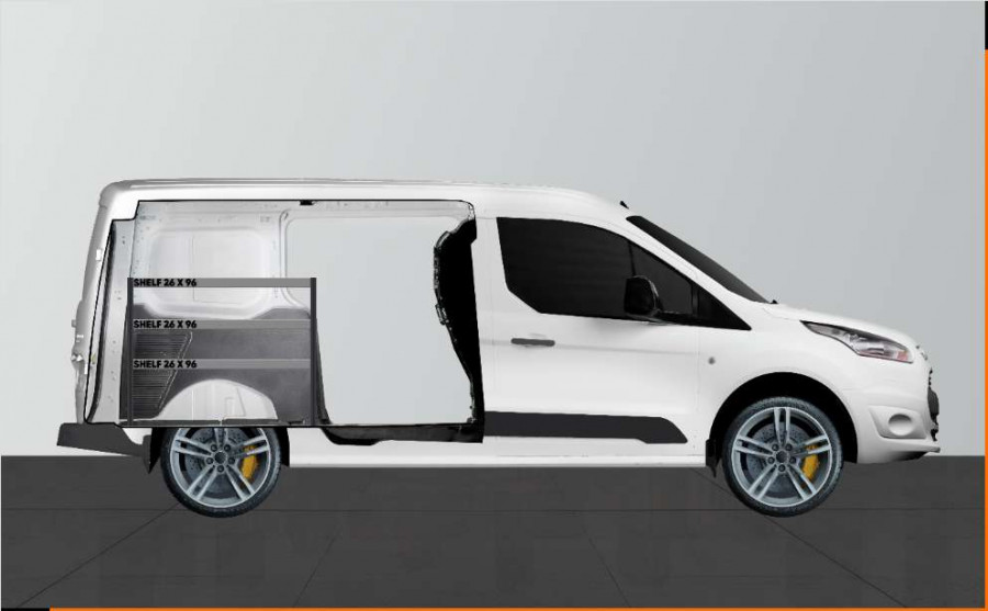 En kortere bilinnredning for den som vil bevare bredden i sin Ford Connect L2. Innredningen er 262,5 mm dyp og gir mulighet for gode oppbevaringsmuligheter for et mindre sortiment, f.eks. pakker med skruer og mindre produkter til bygningsarbeidere, elektrikere og VVS-montører. Innredningen passer til biler både med og uten sidedører, og det er mulig å komplettere innredningen med våre smarte modulbokser. Komplettering av gavlen med vår smartboks er også et populært alternativ for å maksimere oppbevaringsplassen.