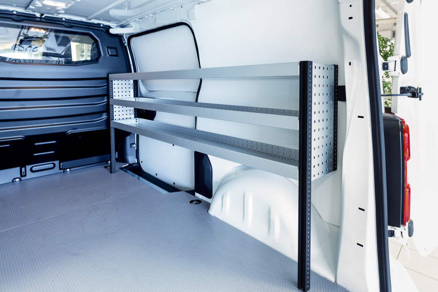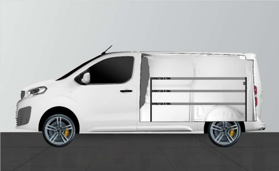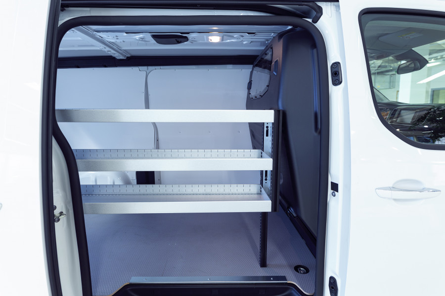 En bilinnredning for deg som vil bevare bredden i din Peugeot Expert, Citroën Jumpy, Opel Vivaro, Fiat Scudo & Toyota ProAce L2. Innredningen er bare 262,5 mm dyp og gir gode oppbevaringsmuligheter for et mindre sortiment, som pakker med skruer og småprodukter for vaktmestere, elektrikere og VVS-montører. Det er mulig å komplettere innredningen med våre smarte modulbokser. Det er også populært å komplettere gavlen med vår smartboks for å maksimere oppbevaringsplassen.