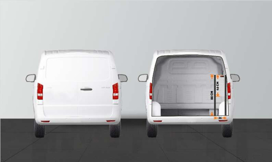 En smal bilinnredning til høyre side som passer til Mercedes Vito Lang.