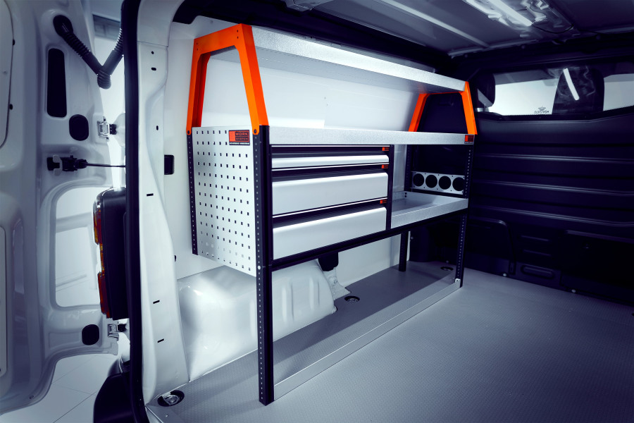 Dette er en av våre mest populære bilinnredninger til Ford Courier L1. LS3-innredningen brukes av både vaktmestere, serviceteknikere, elektrikere, VVS-medarbeidere og snekkere.Innredningen gir gode oppbevaringsmuligheter for både verktøykofferter, maskiner, forbruksmateriell og de minste sortimentdelene. Skuffene kompletteres ofte med våre skuffeinnsatser og avdelere, mens gavlen er populær å komplettere med vår smartboks for å maksimere oppbevaringsplassen.