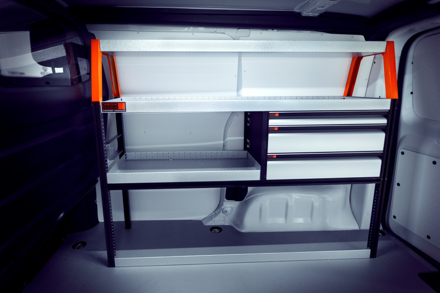 Dette er en av våre mest populære bilinnredninger til Ford Courier L1. LS3-innredningen brukes av både vaktmestere, serviceteknikere, elektrikere, VVS-medarbeidere og snekkere.Innredningen gir gode oppbevaringsmuligheter for både verktøykofferter, maskiner, forbruksmateriell og de minste sortimentdelene. Skuffene kompletteres ofte med våre skuffeinnsatser og avdelere, mens gavlen er populær å komplettere med vår smartboks for å maksimere oppbevaringsplassen.