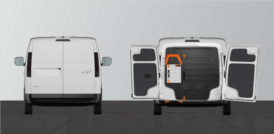 Med vår BASE42 bilinnredning får du rikelig med oppbevaringsplass i KIA PV5 L2H1.
