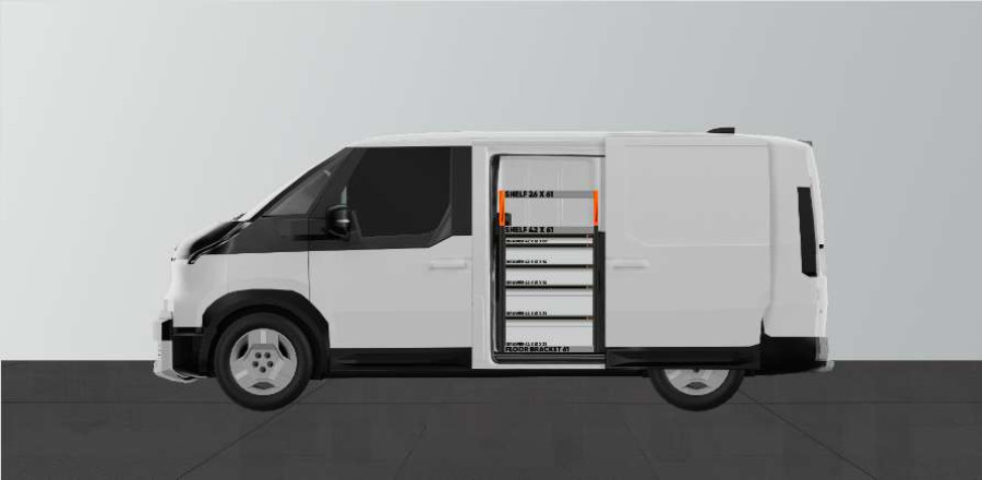 Dette er et av de mest populære systemene for Kia PV5 L2H1 med sidedør på siden av innredningen. Innredningen gir gode oppbevaringsmuligheter for både verktøykofferter, maskiner og et mindre sortiment. Du får en skuffeseksjon med 5 stk. skuffer i ulike størrelser, slik at hver ting har sin plass. Bak skuffene er det en verktøytavle for ekstra opphengsmuligheter i bilen. Skuffene på kulelagerskinner kompletteres ofte med våre nye skuffeinnsatser og avdelere for å skape best mulig oversikt. Det er også populært å komplettere gavlen med vår smartboks for å maksimere oppbevaringsplassen.