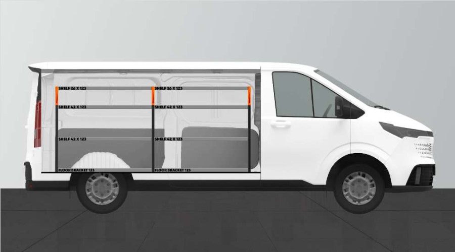 Med vår BASE42 bilinnredning får du rikelig med oppbevaringsplass i Maxus e-Deliver 7