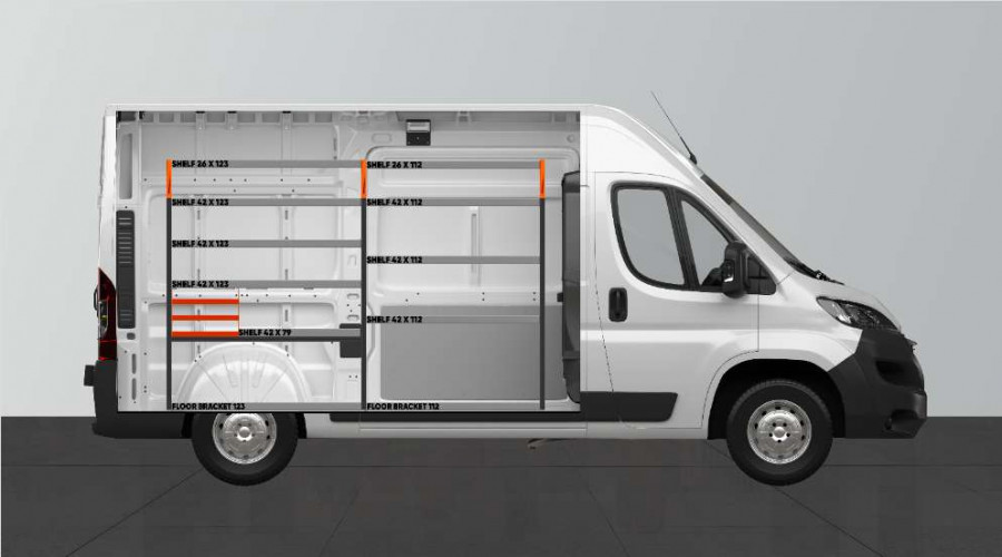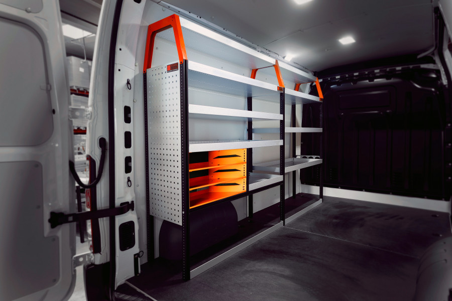 En populær innredning for deg som trenger gode oppbevaringsmuligheter til et mindre sortiment, verktøykofferter og maskiner. Denne serviceinnredningen inneholder 3 stk. sortimentholdere som er tilpasset markedets mest populære sortimentskuff, Racco Carrylight. Innredningen kan om ønskelig kompletteres med disse sortimentskuffene. Bilinnredningen passer perfekt til din Proace Max, Peugeot Boxer, Fiat Ducato, Citroen Jumper 2010- & Opel Movano 2021- L2.