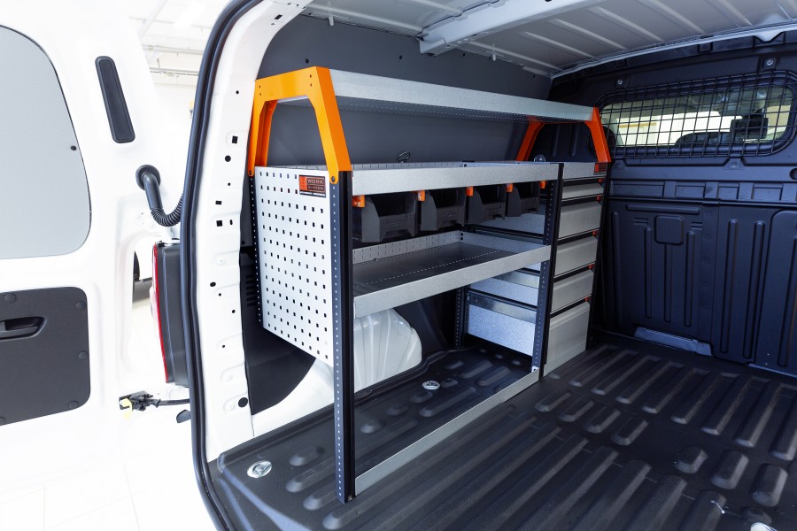 Kjører du en Citroen Berlingo eller Peugeot Partner? I så fall er dette en komplett innredning for deg som har store krav. Innredningen gir bra lagringsmuligheter for verktøyesker, verktøy og mindre sortiment. Du får en hurts med skuffer av forskjellige størrelser, slik at hver ting får sin plass. I denne innredningen er 4stk. av våre nye modulbokser inkludert for å få orden på mindre sortiment. Skuffene på kulelagerskinner er populære å komplettere med våre nye skuffeinnsatser for å få bra struktur. Jevnt fordelt lastvekt i skuffene på kulelagerskinner er 35kg/skuff. Skuffenes indre mål er (mm.): B – 310, D – 387, H – 61, H – 131, samt H - 201.