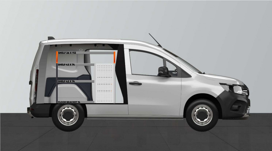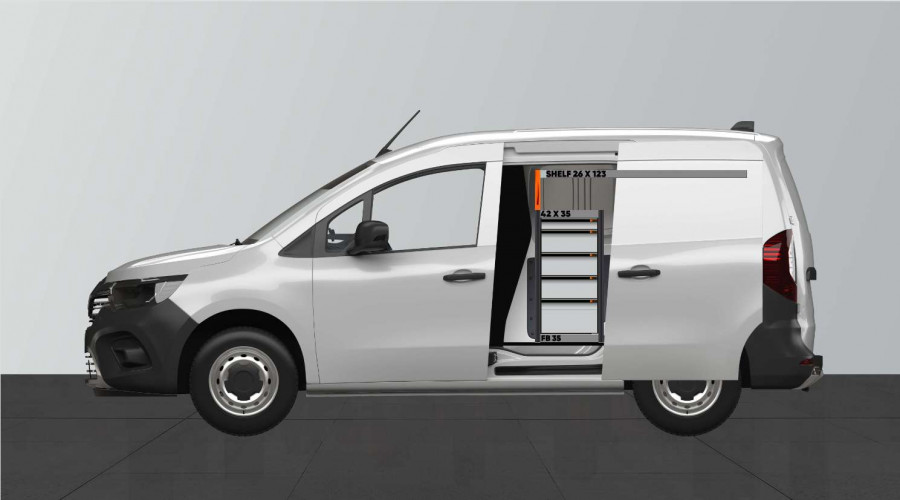Med denne bilinnredningen får du mye oppbevaring i både hyller og skuffer til Citan, Kangoo & Townstar L1.