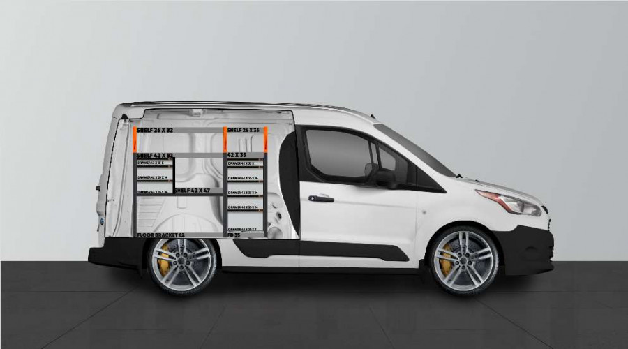 På jakt etter en innredning med mange skuffer? Har du dessuten store krav? Da er dette løsningen for deg og din Ford Connect. Du får totalt 8 stk skuffer på kulelagerskinner. Innredningen gir bra lagringsmuligheter til verktøyesker, verktøy og mindre sortiment. Du får en hurts med skuffer i forskjellige størrelser for å gi hver ting sin plass. Skuffene på kulelagerskinner er populære å komplettere med våre nye skuffeinndelere for å få struktur. Jevnt fordelt lastvekt i skuffene på kulelagerskinner er 35kg/skuff. Skuffenes indre mål er (mm.): D - 387, B - 310, H - 201, H - 131 og H - 61.