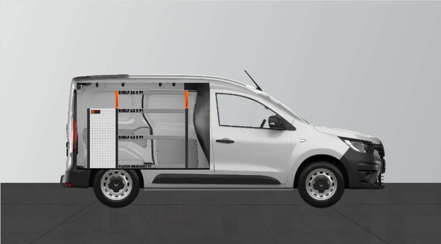 En innredning for deg som ønsker enkel tilgang til mange skuffer. Denne bilinnredningen til Dacia Dokker & Renault Express L1 gir også gode muligheter til å oppbevare verktøykofferter, maskiner og et mindre sortiment i hyllene i innredningen. Hyllene kan kompletteres med både hylleinndelere og våre smarte modulbokser. Modulboksene finnes i ulike størrelser for å passe til nettopp dine behov.