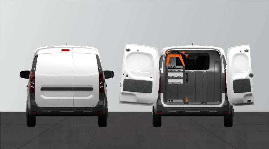 Denne bilinnredningen har en lett tilgjengelig skuffeseksjon rett innenfor bakdørene i Dokker & Express L1.