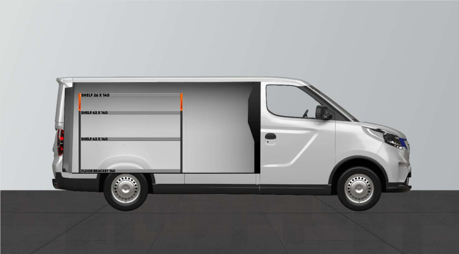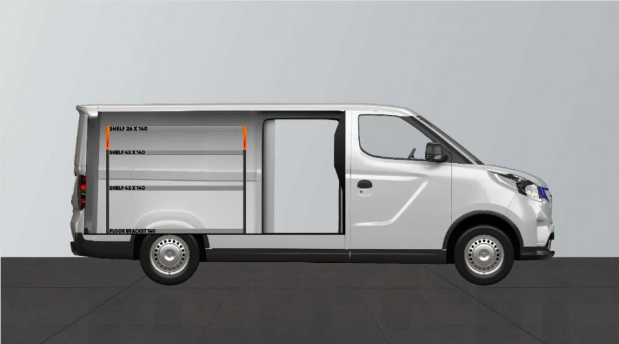 Med bilinnredningen SHORT42 får du rikelig med oppbevaringsplass i din Maxus e-Deliver 3 L2.