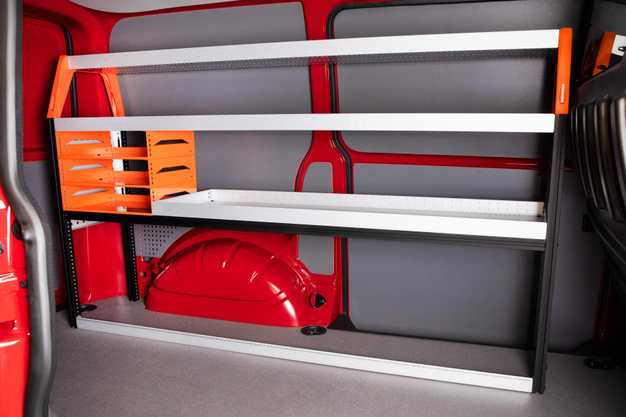 En populær innredning for deg som trenger gode oppbevaringsmuligheter til et mindre sortiment, verktøykofferter og maskiner. Denne serviceinnredningen inneholder 3 stk. sortimentholdere som er tilpasset markedets mest populære sortimentskuff, Racco Carrylight. Innredningen kan om ønskelig kompletteres med disse sortimentskuffene. Bilinnredningen passer perfekt til din Maxus e-Deliver 3 L2.