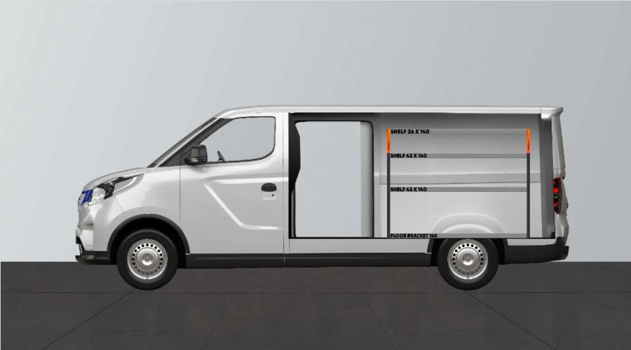 Med bilinnredningen SHORT42 får du rikelig med oppbevaringsplass i din Maxus e-Deliver 3 L2.