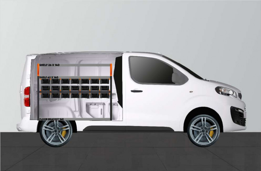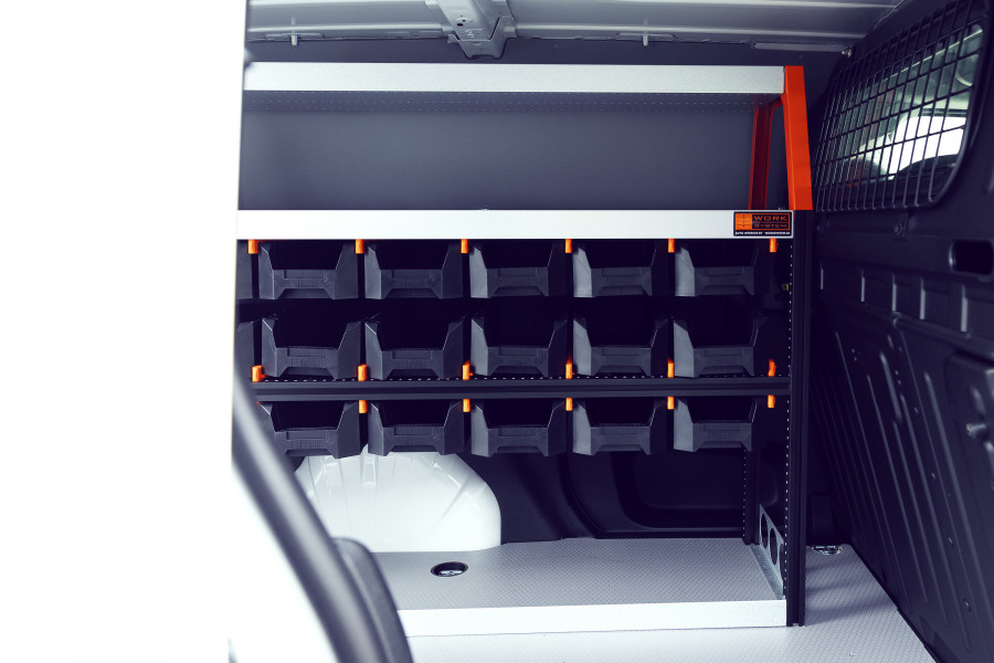 RACK er en ny, bransjeledende bilinnredning til Peugeot Expert, Citroen Jumpy, Opel Vivaro, Fiat Scudo & Toyota ProAce L1. Den passer perfekt for deg som trenger gode oppbevaringsmuligheter til deler som skruer, koblinger, bolter, bor osv.Innredningen er maksimert med totalt 21 av våre nye, modulbokser som kan inndeles. Modulboksene trekkes ut på fastmonterte skinner for enkel tilgang. Fronten på modulboksene er utformet for optimal tilgjengelighet, og kan kompletteres med transparent front og tverrgående mellomvegger som kan settes inn hver 60 mm.