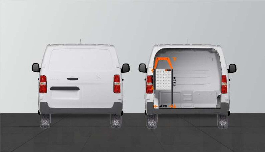 En kortere bilinnredning til din Peugeot Expert, Citroen Jumpy, Fiat Scudo & Toyota ProAce, som gir gode oppbevaringsmuligheter for både verktøyvesker og maskiner og et mindre sortiment. Innredningen har hyller med en dybde på 420 mm, som gjør at de fleste verktøykofferter på markedet passer perfekt. Den øverste hyllen på 262,5 mm kompletteres ofte med våre modulbokser for separate plasser til et mindre sortiment. Innredningen passer til biler både med og uten sidedører. Ikke glem å utnytte verktøytavlen på gavlen.