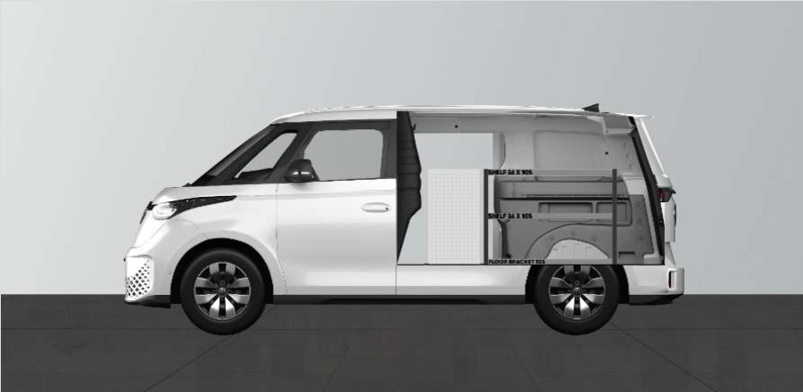 Dette er et av de mest populære systemene for VOLKSWAGEN ID BUZZ L1 med sidedør på siden av innredningen. Innredningen gir gode oppbevaringsmuligheter for både verktøykofferter, maskiner og et mindre sortiment. Du får en skuffeseksjon med 5 stk. skuffer i ulike størrelser, slik at hver ting har sin plass. Bak skuffene er det en verktøytavle for ekstra opphengsmuligheter i bilen. Skuffene på kulelagerskinner kompletteres ofte med våre nye skuffeinnsatser og avdelere for å skape best mulig oversikt. Det er også populært å komplettere gavlen med vår smartboks for å maksimere oppbevaringsplassen.