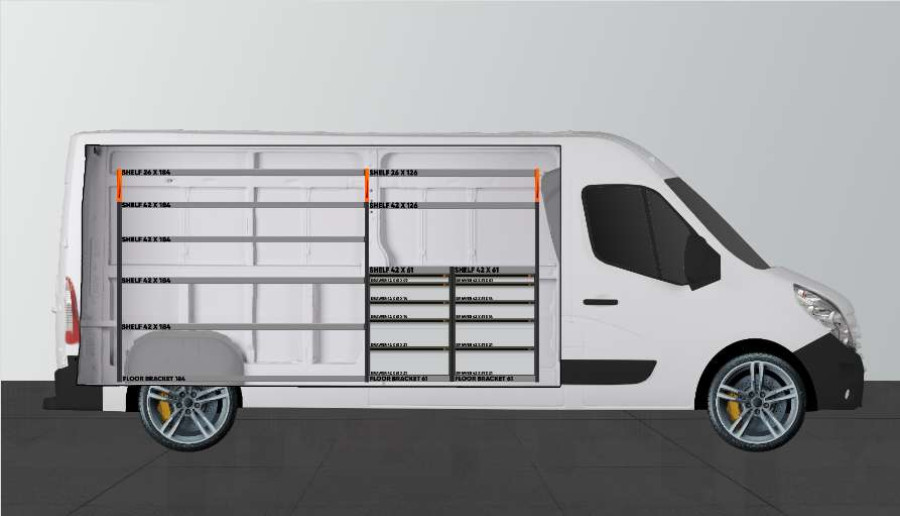 Trenger du en innredning med mange skuffer? Stiller du dessuten høye krav til innredningen? Da er dette det perfekte alternativet for deg og din Opel Movano, Renault Master & Nissan NV400 L3. Innredningen gir gode oppbevaringsmuligheter for både verktøykofferter, maskiner og et mindre sortiment. Totalt 10x skuffer på kulelagerskinner er inkludert. Du får også en skuffeseksjon med skuffer i ulike størrelser, slik at hver ting har sin plass. Skuffene på kulelagerskinner er populære å komplettere med våre skuffeinnsatser og avdelere for å skape best mulig oversikt.