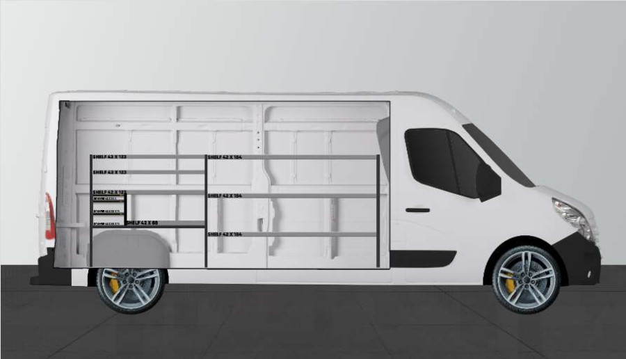 Et priseffektivt alternativ for deg som har et enklere behov for oppbevaring og vil ha en kombinasjon av skuffer på kulelagerskinner, men også hyller til din Opel Movano, Renault Master & Nissan NV400. Innredningen er 420 mm dyp, noe som gjør at de fleste verktøykofferter på markedet passer perfekt. Skuffene er populære å komplettere med våre skuffeinnsatser og avdelere, noe som gir gode muligheter til å skape orden i et mindre sortiment.