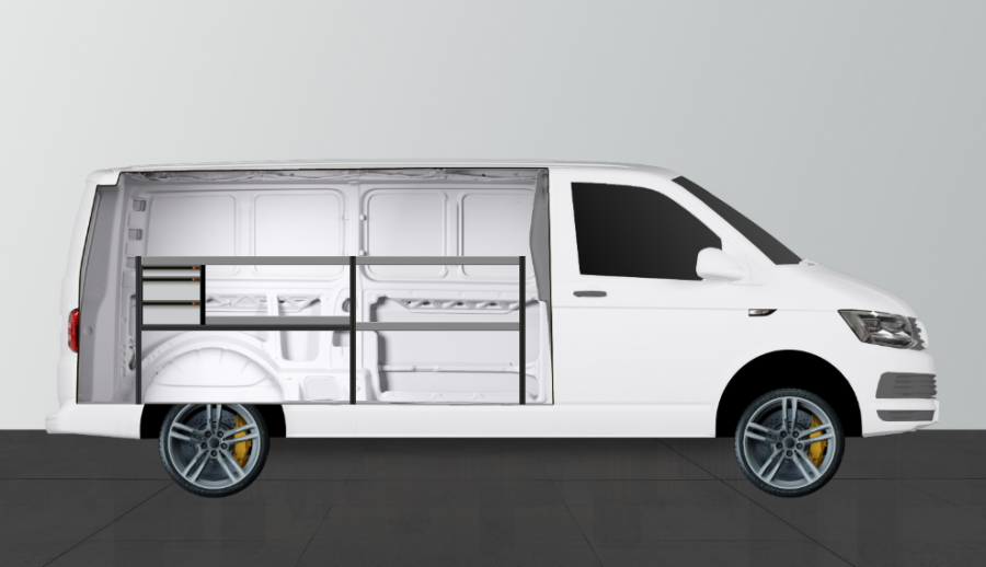 Et rimeligt alternativ for deg som ønsker en kombinasjon av skuffer på kulelagerskinner, men også lagringsalternativer i form av hyller i din VW Transporter. Innredningen har en dybde på 420mm, hvilket gjør at de fleste av markedets verktøyesker passer perfekt i hyllene. Det er populært at komplettere skuffene med våre nye skuffeinnsatser. Dette gir deg gode muligheter til å få orden på ditt sortiment.