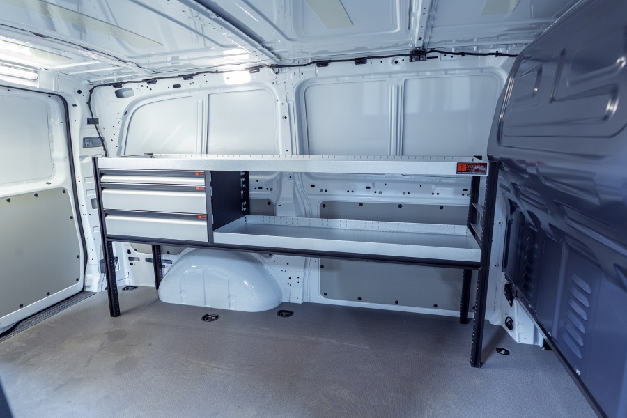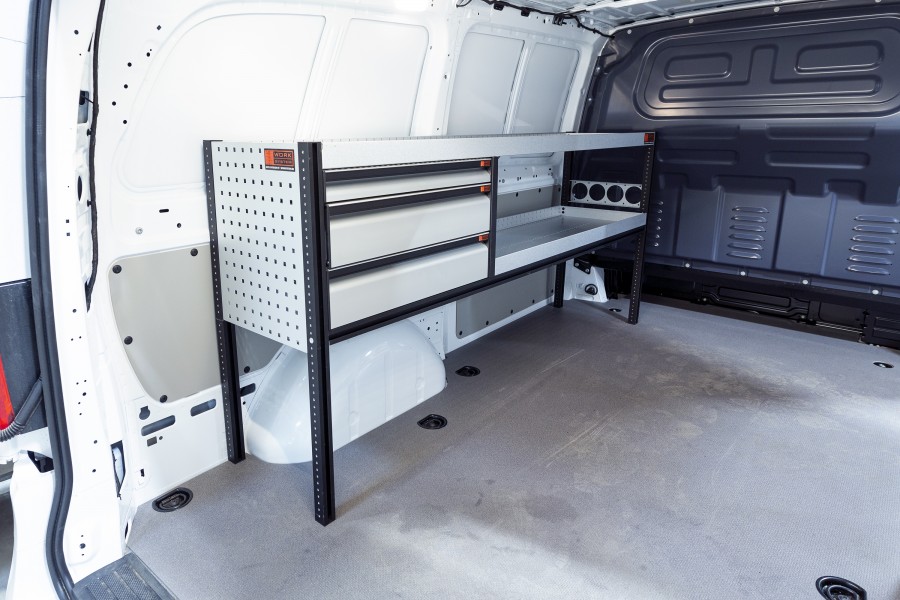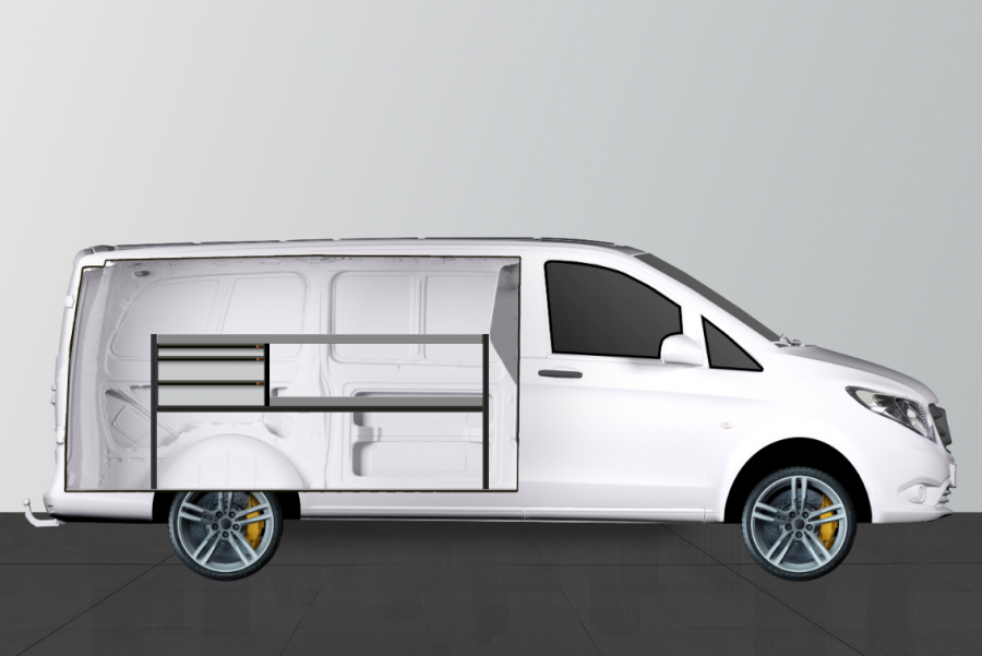 Et rimelig alternativ for deg som ønsker en kombinasjon av skuffer på kulelagerskinner, men også lagringsalternativer i form av hyller i din Mercedes Vito. Innredningen har en dybde på 420mm, hvilket gjør at de fleste av markedets verktøyesker passer perfekt i hyllene. Det er populært å komplettere skuffene med våre nye skuffeinndelere. Dette gir deg gode muligheter til å få orden på ditt sortiment.