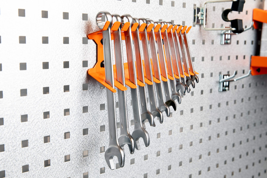 Vil du slippe å lete etter ringnøklene i lommen eller verktøykassen? Med vår ringnøkkelholder har du alltid verktøyene dine organisert og lett tilgjengelig. Holderen passer perfekt på verktøytavler med C-C 35 mm eller 38 mm og har plass til 12 stk. ringnøkler med størrelse opptil 32 mm.