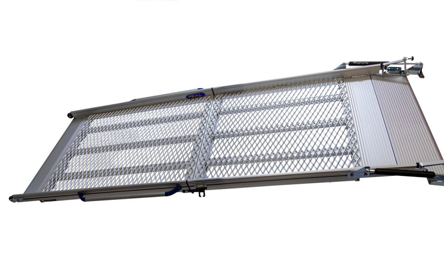 2-delt rampe for enkel på- og avlasting. Den suverene sklibeskyttelsen gjør lastningen sikker og rampen lettere.