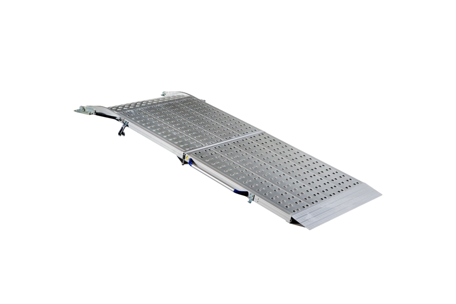 2-delt rampe for enkel på- og avlasting. Den suverene sklibeskyttelsen gjør lastningen sikker og rampen lettere.