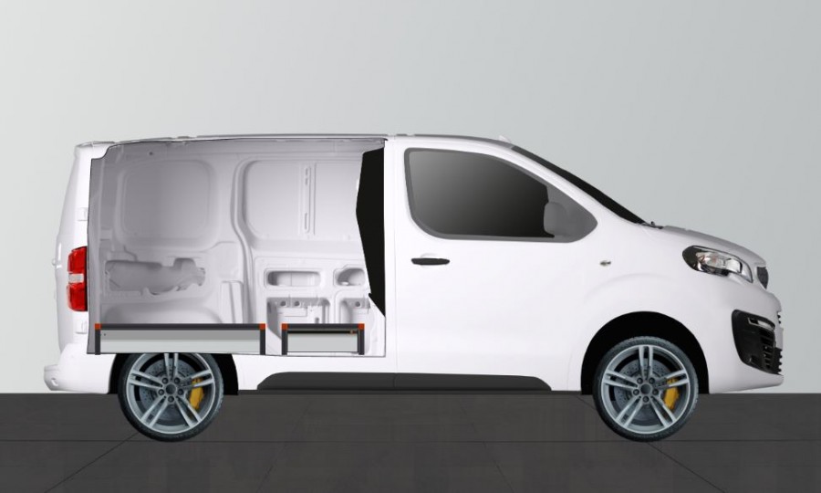 Dobbeltgulvet passer til Peugeot Expert L1, Opel Vivaro L1 2020-, Citroën Jumpy L1, Fiat Scudo og Toyota ProAce Compact.