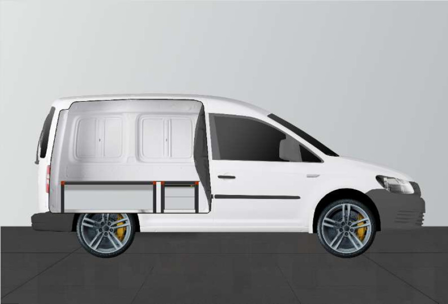 Optimaliser dine lagringsmuligheter i bilen med et dobbeltgulv. Takket være de lange uttrekkbare skuffer får man god oversikt over materialer og verktøy, samtidig som det ligger trygt og skjult i bilen. Dette dobbeltgulvet består av 3 skuffer, hvorav to betjenes fra bakdøren og en fra sidedøren.